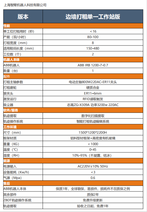 采用六轴工业机器人对冷粘鞋、 皮鞋、劳保鞋系列鞋面进行打粗, 使产品更加稳定,提高质量;配 合自研的智能打粗轨迹编辑系统, 可摆脱人工示教,一键生成轨迹 数据,极大的提升生产效率和产 品良品率。